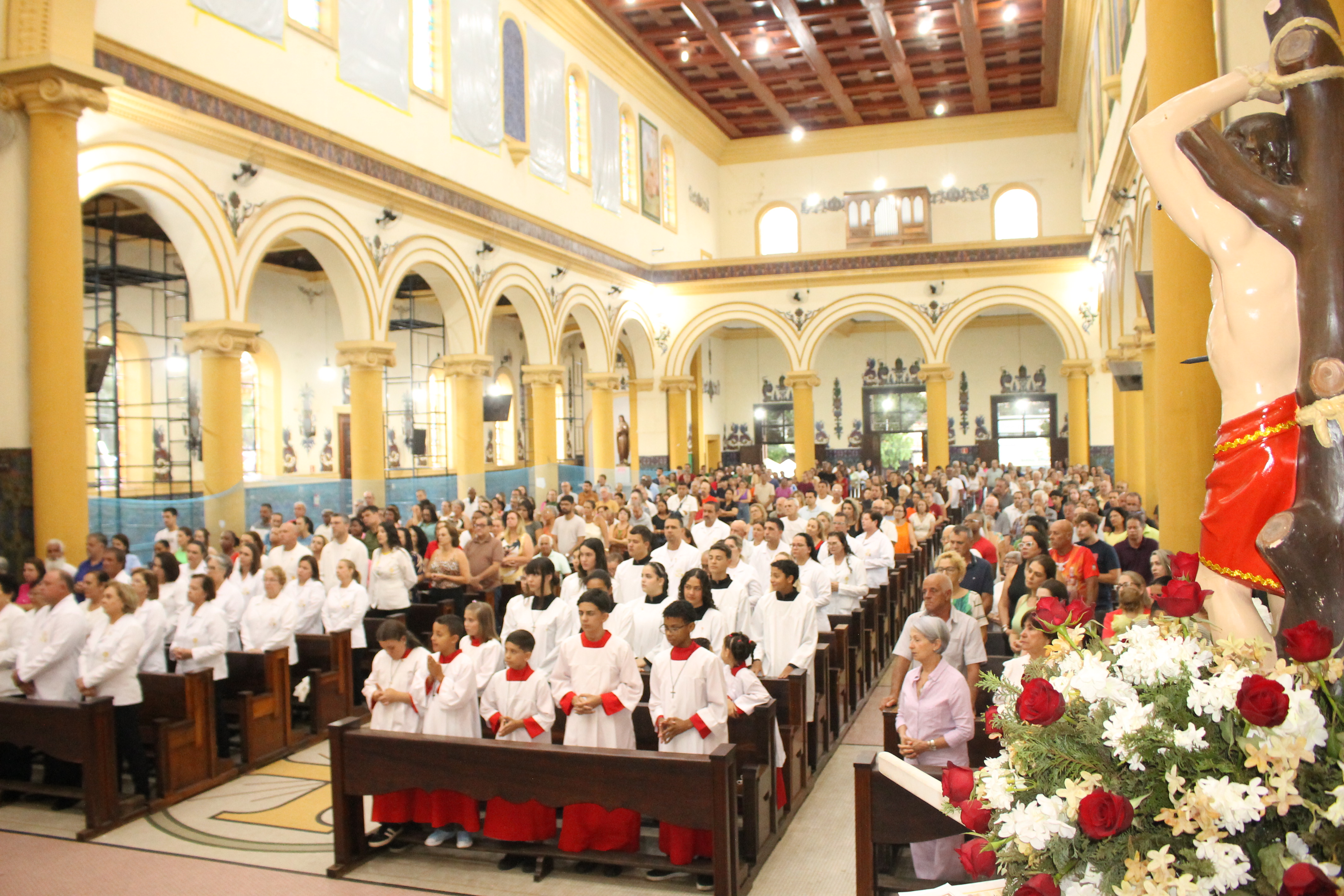 Na noite desta terça-feira, 20 de janeiro, às 18h30, a Catedral Diocesana acolheu com fé e devoção a Santa Missa em honra a São Sebastião, padroeiro da cidade de Jacarezinho-Pr. A Santa Missa foi presidida pelo pároco, Padre Luiz Fernanado, reunindo numerosos fiéis que, com alegria, participaram deste momento especial de espiritualidade e tradição.